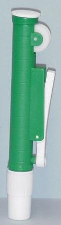 PIPETTE PUMP Easy one hand operation. Rotation of the thumbwheel draws or dispenses the liquid with precision and ease. By depressing the side lever the entire contents can be dispensed rapidly. Accepts glass and plastic pipettes. Color coded for sizes. Pipette Pump for Pipettes up to 10ml, Green